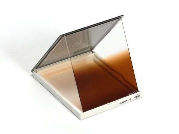Oryginalny filtr połówkowy systemu Cokin P o numerze katalogowym P125 i nazwie GRADUAL T2 – tabaczkowy, do podkreślenia efektu zachodu słońca.