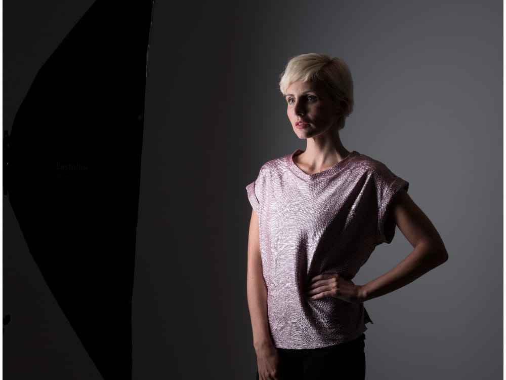Siatka (krata) z pasków czarnego materiału. Zawężą kąt wiązki światła z softboksa.